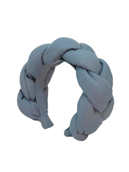 DESCRIZIONE Cerchietto intrecciato realizzato con tessuto di lino al 100% in un fresco colore blu medio.